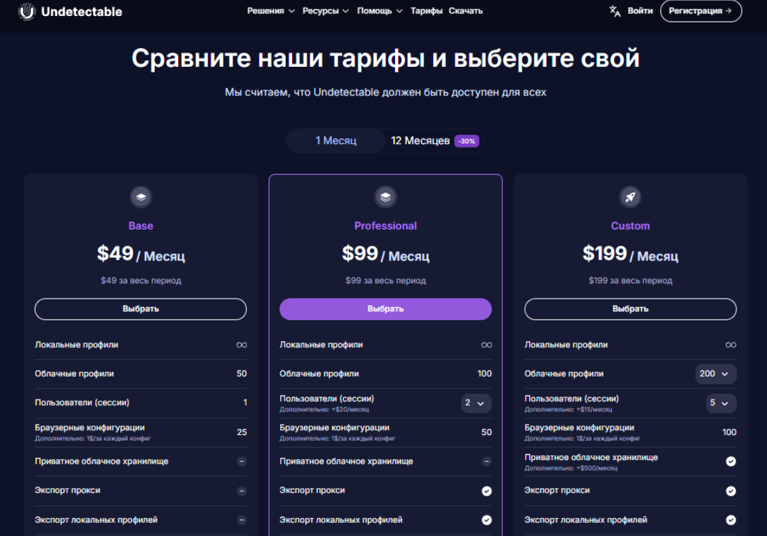 Undetectable browser предлагает гибкую тарифную сетку: